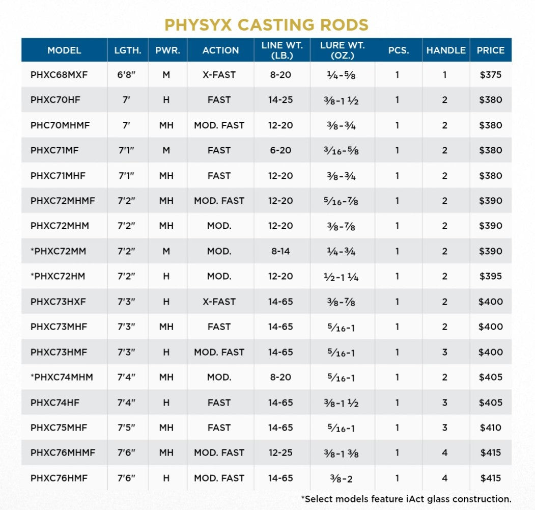 Handcrafted in Park Falls, WI USA. Physyx casting rods feature St. Croix Rod technologies IPC, ART, TET, FRS, and carry a 15 Year Transferrable Warranty.